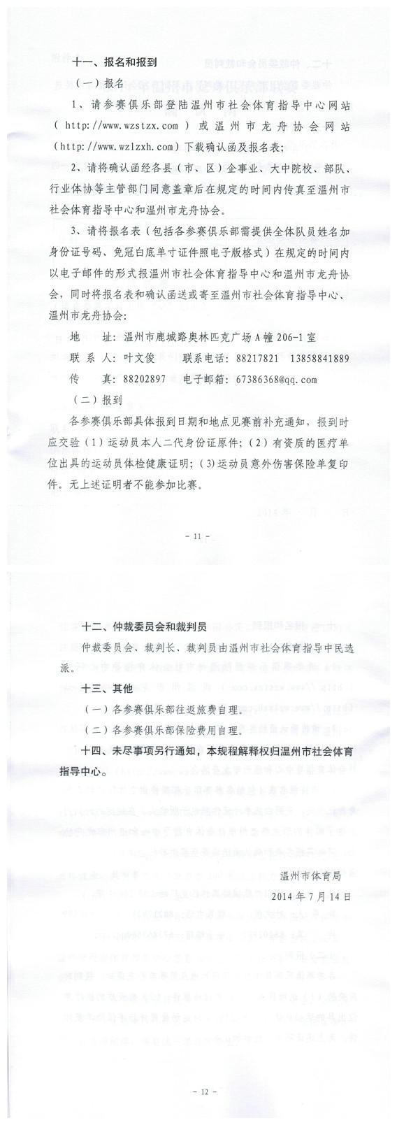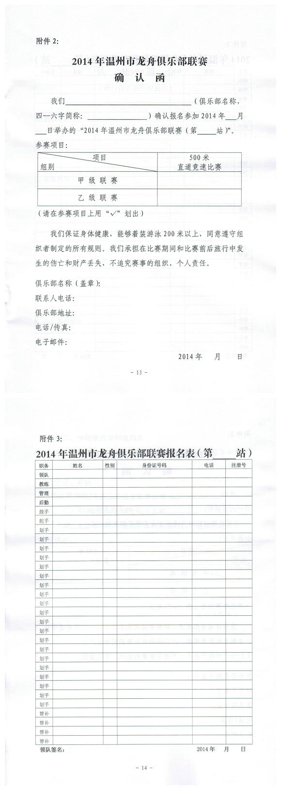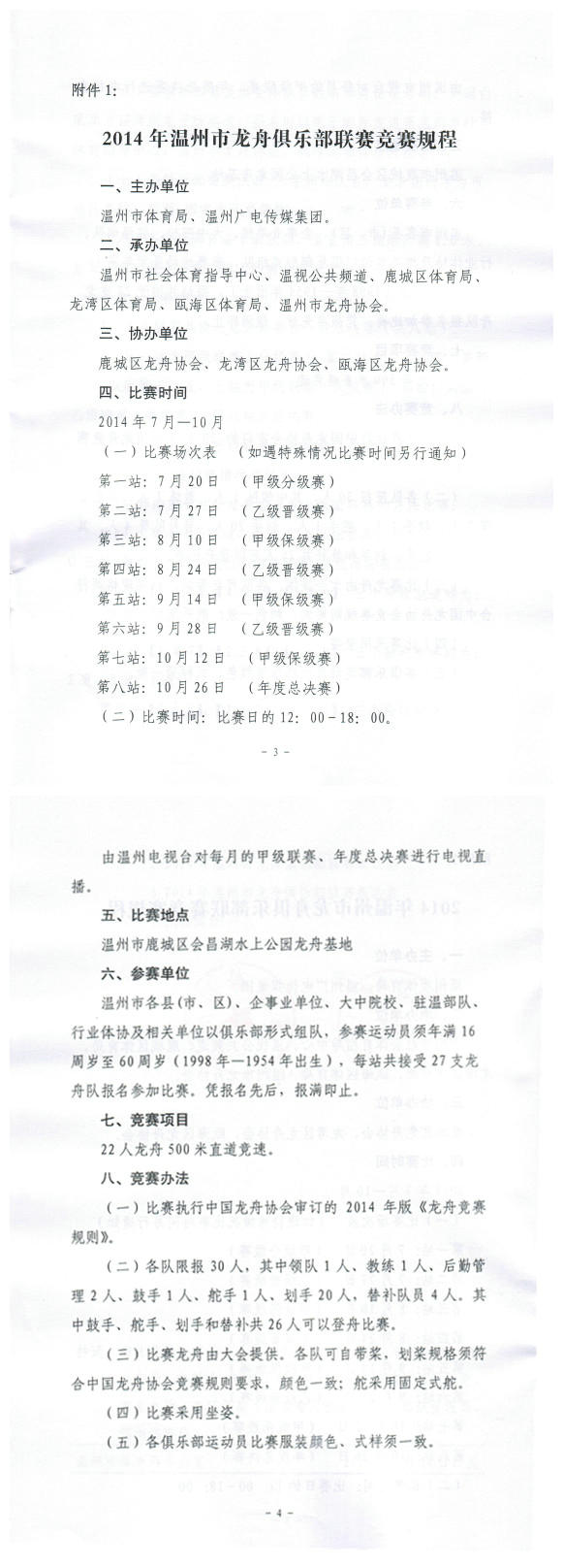 2014年温州市龙舟俱乐部联赛(第一站)补充通知...