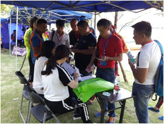 工作人员检查运动员身份信息