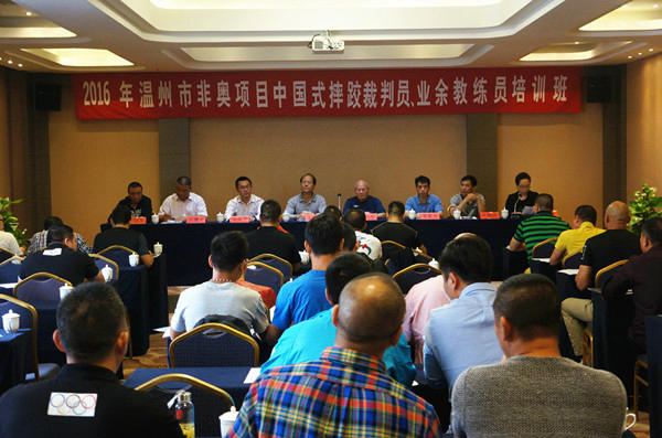 10月14-15日,2016年温州市非奥项目中国式摔跤裁判员、业余教练员培训班在市区金鹏宾馆圆满举行,来自我市各县(市、区)共72名学员参加了培训。