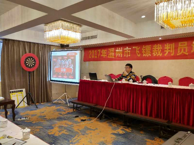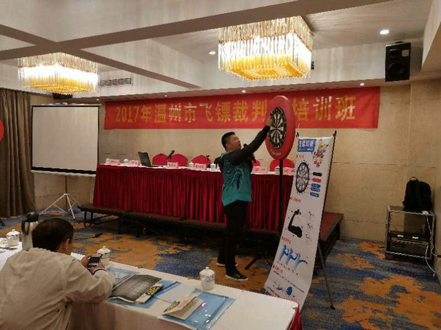 为加快我市非奥专项技术人才队伍建设,促进非奥项目的普及和开展,推进我市飞镖运动裁判员人才队伍的建设,由温州市体育局主办,温州市社会体育指导中心、温州市社会体育指导员协会承办的2017年温州市飞镖裁判员培训班,于11月18日至19日在温州市东瓯大酒店四楼悦俪厅圆满举行,来自我市各县(市、区)的基层体育工作者以及飞镖爱好者50多人参加了培训。