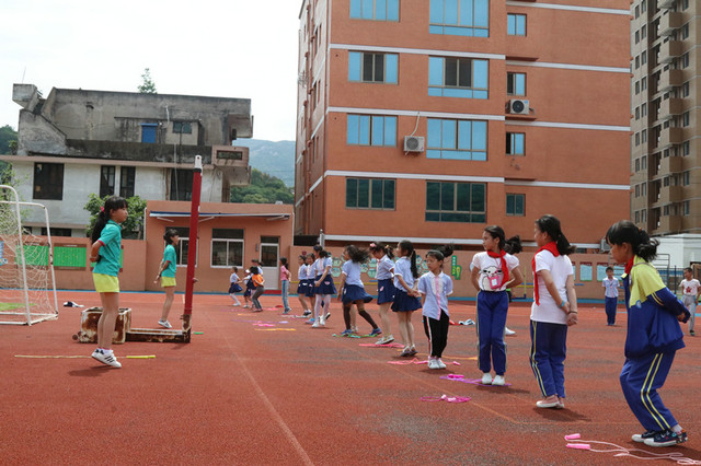 在大门小学的操场上,学生们正热火朝天地学跳绳和轮滑。温州市黄龙第二小学为大门小学带去的体育课程花样跳绳,在现场以老师带老师,学生教学生的方式开展了现场授课活动,通过指导,100多名孩子们对花样跳绳产生了浓厚的兴趣。温州市轮滑协会为大门小学送去了轮滑装备,现场对孩子们进行教学,孩子们的兴奋无以言表。这次的送体育教学活动也获得了大门小学师生的热烈欢迎。