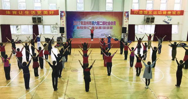 11月18日至19日,由温州市体育局主办,温州市社会体育指导中心、温州市社会体育指导员协会承办的2017年温州市第六(广播体操)、第七期(健身气功)二级社会体育指导员培训班分别在温州育英小学和苍南县万豪之星酒店同时举行,共计有来自我市各县(市、区)约110多名学员参加了学习培训。