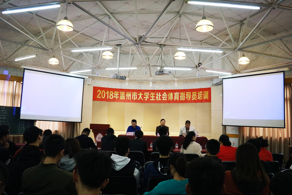 11月19至20日,2018年温州市大学生社会体育指导员培训班在浙江工贸职业技术学院举行。共有100名大学生参加了培训。
