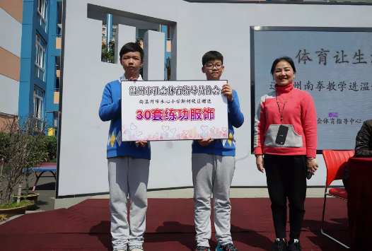 温州市社会体育指导员协会向温州市水心小学新村校区赠送了30套练功服。