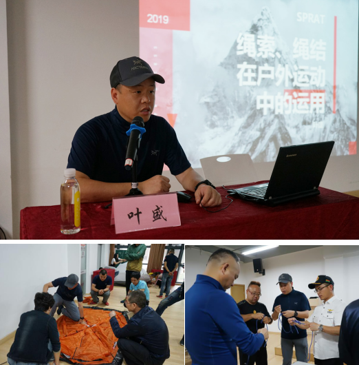 本次培训邀请了温州市户外运动协会副主席、白鹿会救援队教官叶盛讲授户外运动全程计划和准备、户外露营的概论和运用、户外装备的选择和使用以及绳索、绳结在户外运动中的运用等专业户外知识,助教胡建平、潘一文、高秀仁参与实践课程,帮助老师与学员共同交流学习。