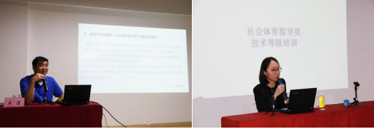 市社体中心副主任木淙介绍我市如何开展科学一站式服务理念和如何使用社会体育指导员平台;市社会体育指导员协会常务副秘书长钱乐炜为学员讲授社会体育指导员基础知识。