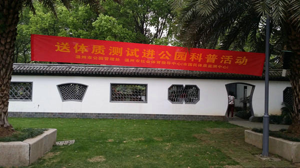 为贯彻落实《全民健身计划纲要(2011-2015)》,积极响应《国民体质监测工作规定》要求,充分利用现有公共资源,温州市社会体育指导中心(温州市国民体质监测中心)与温州市公园管理处合作,开展“送体质测试进公园”科普活动。此次首站活动在马鞍池公园进行,旨在宣传推行科学的健身方法,增强全民健身的吸引力,提高市民健身质量和水平。