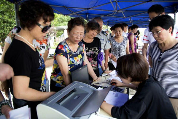 工作人员为市民打印检测报告