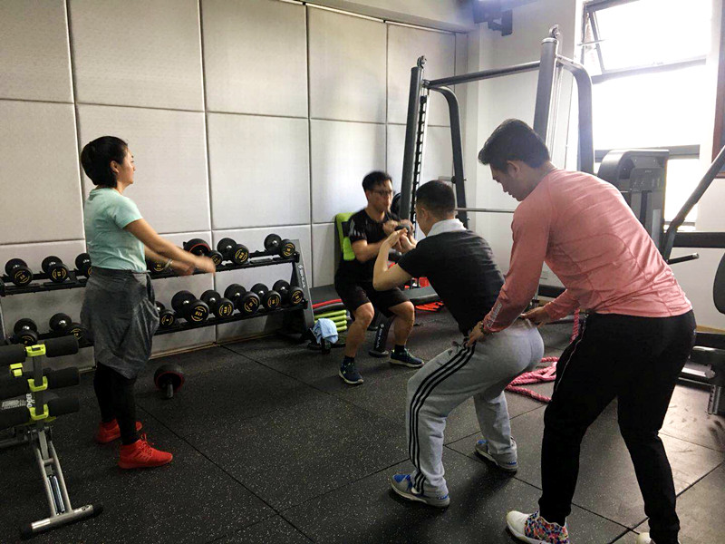 参加课程的市民首先在一楼的国民体质监测大厅进行体质检测,获得个人“运动处方”,然后来到二楼科学健身指导室,由健身教练为他们一一进行了专业的指导。