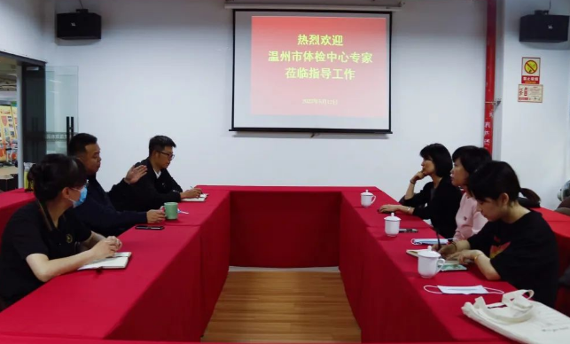 5月12日,温州市体检中心主任水旭娟、副主任韩虹、健康管理师叶珊珊一行来到我中心参观交流。