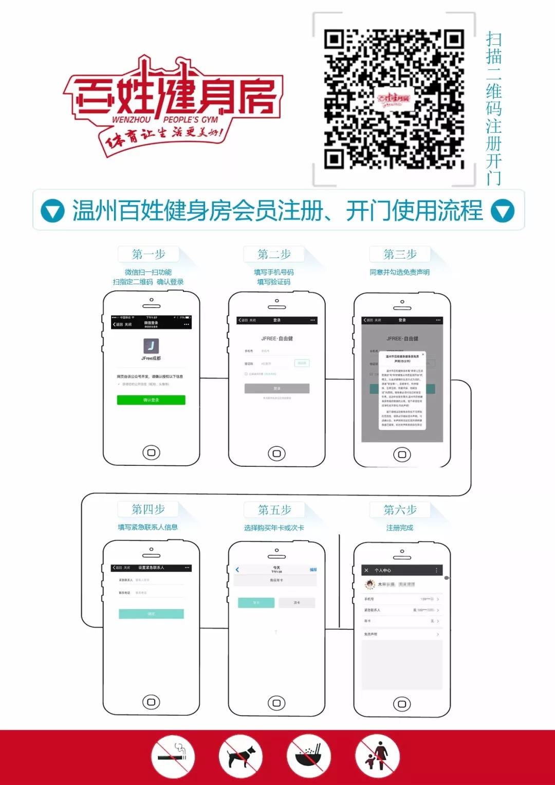 来到对应的百姓健身房后,通过手机微信扫一扫功能,按照开门流程,注册成功后即可开门进入锻炼。
