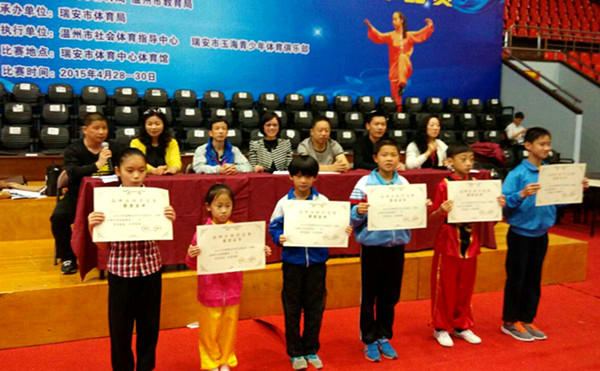 2015年温州市青少年儿童武术(套路)比赛于4月28日—30日在瑞安市体育中心体育馆圆满举行。