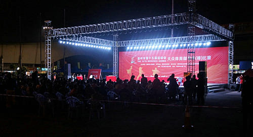 由市人民政府主办的温州市第十五届运动会是我市水平最高、规模最大的综合性运动会。本届市运会设青少年部22个大项30个分项、大众体育部25个大项和行业系统部12个大项,以各县(市、区)、温州经济技术开发区、各行业系统为单位组团参赛。本届市运会参赛运动员8843人,是历年来规模最大、参赛人数最多的一届。大众部、行业部比赛自2013年4月开始,37个项目历时200多天相继在我市各县(市、区)举行,在集中比赛阶段,我中心协办了水上救生比赛、广播体操比赛、南拳(南棒)比赛、篮球比赛、体能测试比赛等多项比赛。