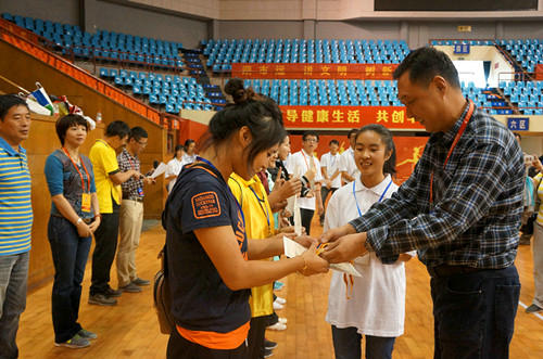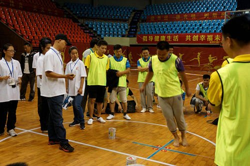 由我中心协办的温州市第十五届运动会行业系统部体能测试比赛于2013年10月18日上午在体育中心体育馆举行。来自我市政法、农口、教育等八大行业系统的144人参加了比赛。此次体能测试比赛设“坐位体前屈”、“肺活量”、“握力”、“两点侧滑(40—59周岁)、象限跳(20—39周岁)”四个项目,分男女甲乙组别进行,取个人全能成绩,分别考验选手的柔韧性、心肺功能、力量和灵敏度。经过半天的比赛,最终,我市卫生局派出的卫生系统代表队夺得团体总分第一名,政法系统和教育系统居第二、三位。