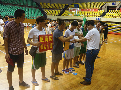 温州市体育局纪检组长彭永松为获奖队伍颁奖