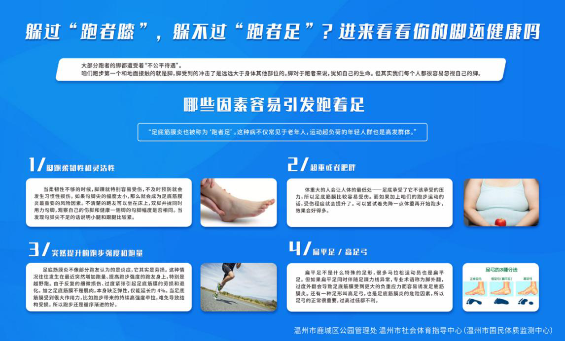 日前,市区华盖山公园宣传科普栏已全部更新。本期科普宣传的内容是:《躲过“跑者膝”,躲不过“跑者足”?进来看看你的脚还健康吗?》