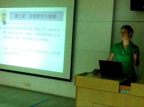 图1-1 科学讲座第三期——张秀华教授在讲解“合理营养与健康”