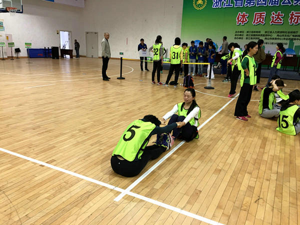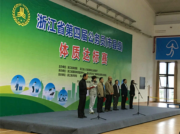 为了贯彻和推广《浙江省全民健身条例》和《浙江省3-69岁公民体质评价标准》,推动全省公务员科学健身活动的开展,提高我省公务员身体素质,以良好的形象和健康的体质,为社会公众服务。11月18日—20日,由浙江省体育局、浙江省人力资源和社会保障厅主办的浙江省第四届公务员(市县级)体质达标赛在舟山举行,来自全省19个市县的140余名各级公务员参加了本次比赛。