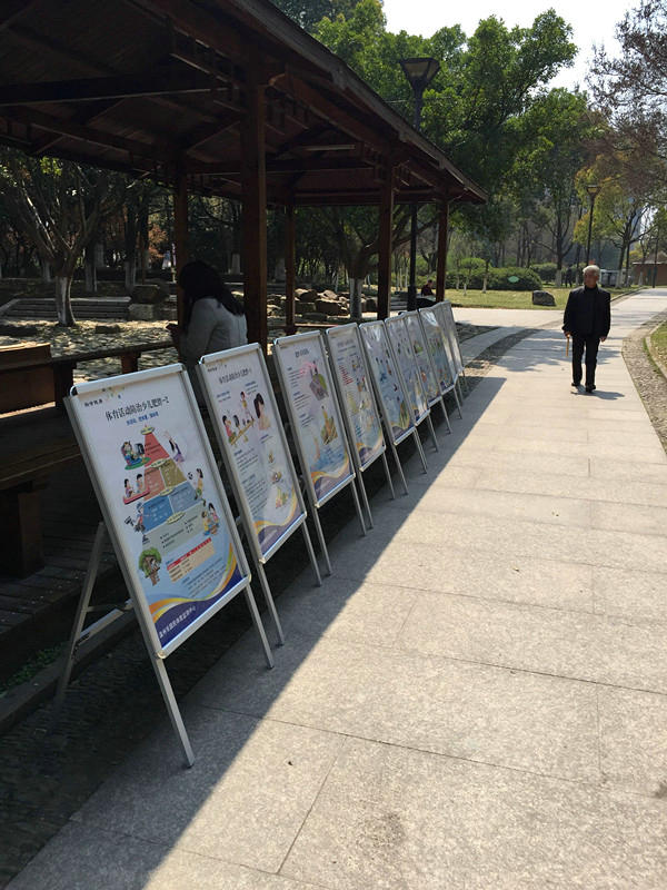 图9 送体质测试进公园科普活动现场——科学健身知识展示中