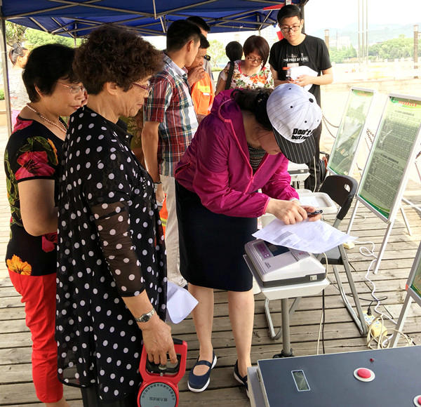 工作人员指导市民进行检测