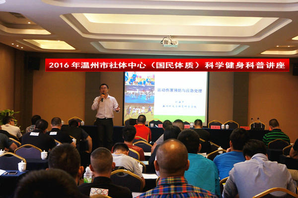 根据温州市社会体育指导中心(温州市国民体质监测中心)今年的工作安排,积极响应省级站点的工作要求,于10月14日在市区金鹏宾馆开展了《科学健身》系列科普讲座第二期《大众健身中的运动损伤与应急处理》。有来自市摔跤协会的会员们以及市民朋友共70多人参加了讲座,收到良好的科普宣传效果。