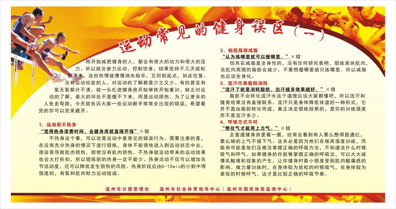为贯彻落实《全民健身计划纲要》,充分利用现有公共资源,让广大市民更进一步地了解科学健身锻炼知识,温州市社会体育指导中心(市国民体质监测中心)每年都会与市公园管理处合作,在全市六大公园橱窗进行科普宣传。